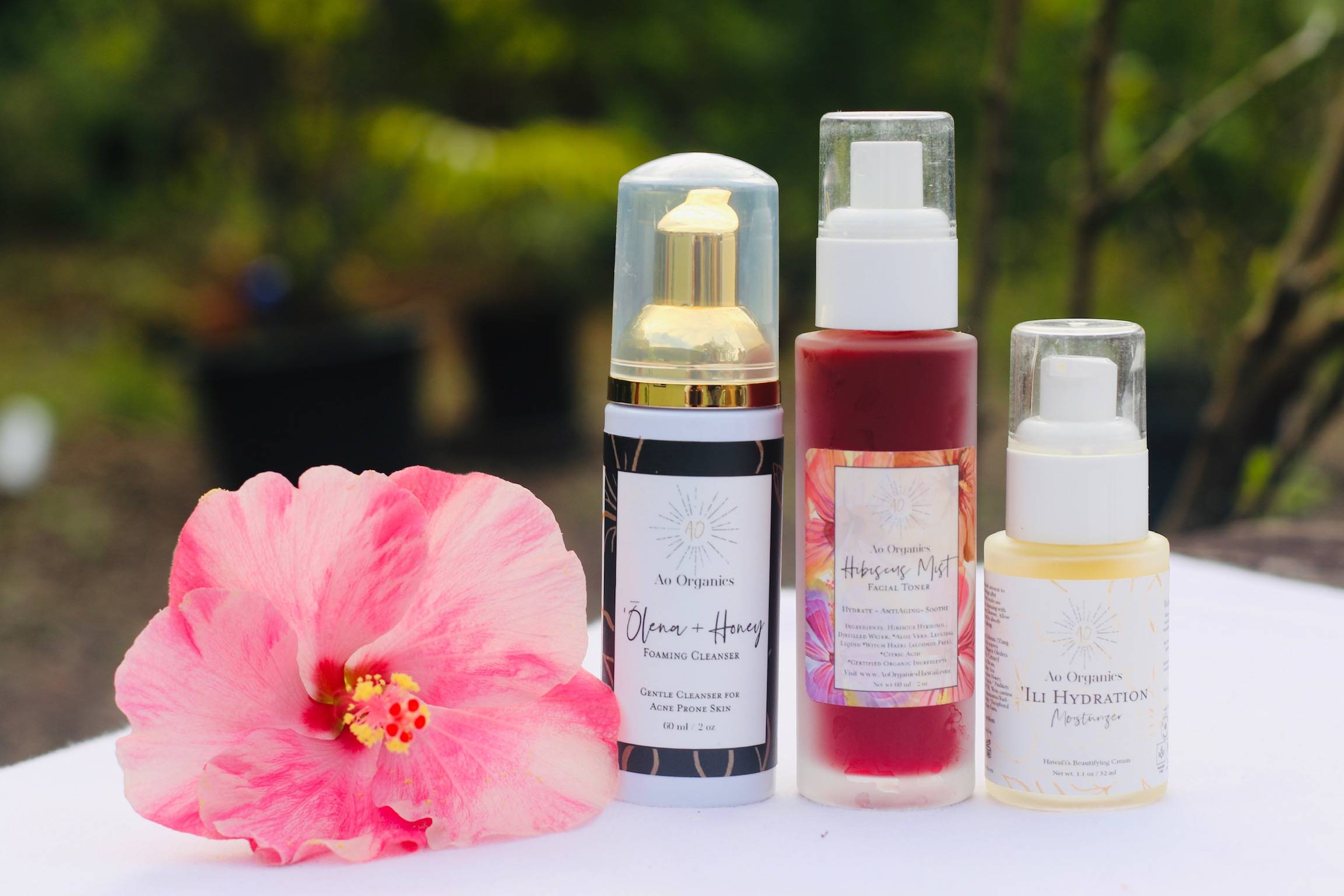 A: The correct pronunciation for ao is “ah-oh,” and in ‘ōlelo Hawai‘i, it translates to world, earth or realm. When I decided to start my business and create these natural products, everything I created was to be just that–from ao, from our earth. I wanted products safe for your skin, keiki, ohana, and of course, our ao.